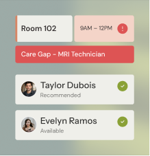 Surface real-time coverage insights to identify gaps across providers, rooms, and equipment.