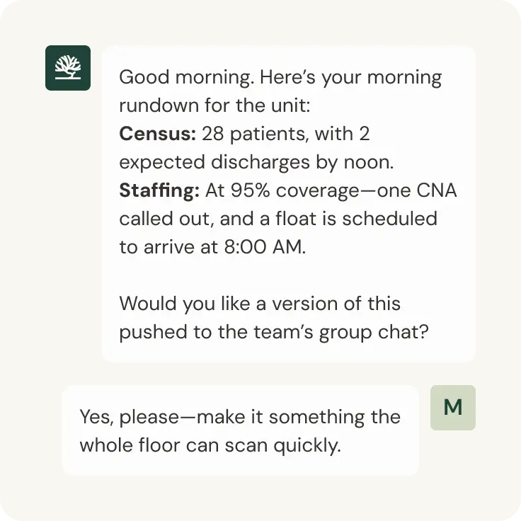 UnityAI operates within clearly defined guardrails and confidence thresholds. If a situation falls outside those boundaries, the work is automatically routed to staff — with full context and history attached. Nothing is guessed, dropped, or delayed. That's why UnityAI can support higher-acuity workflows where generic voice AI breaks down. It knows how to act and when to escalate.